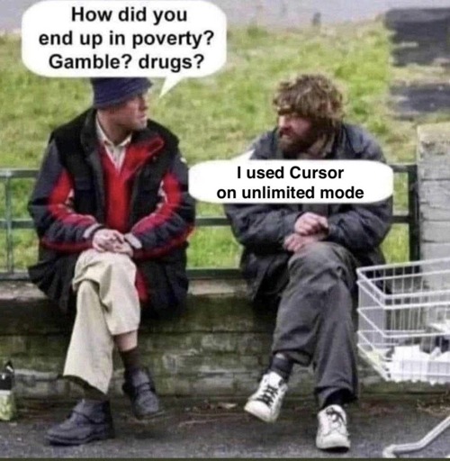 minus-squareitkovian@lemmy.worldlinkfedilinkarrow-up5·7 days agoNaah, bro, Cursor forgot to turn off my Azure instance.