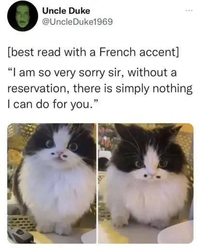 Yeah but it could be those words, just the meme makes it sound nice with the cute cat, when you have to imagine it said with utter disgust that you even dare to be standing there in front of him. But it could be those words to maintain plausible deniability with the boss.