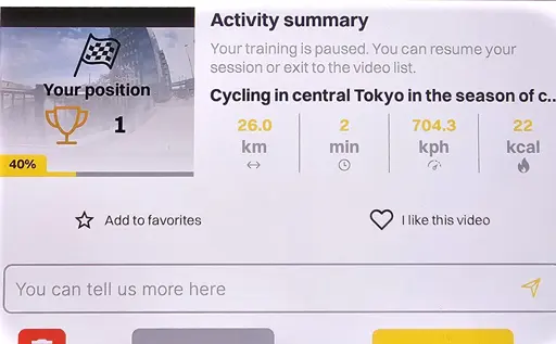 Explanation: a glitch in the Kinomap exercise app reset the ride time but not the distance and thus convinced itself that I’d been zooming around the virtual streets of Tokyo at almost 57% the speed of sound